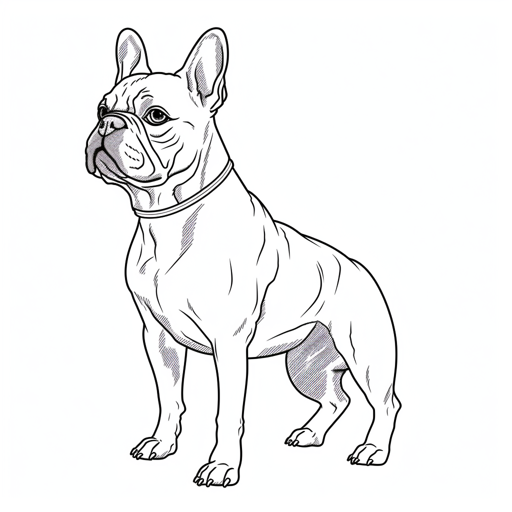 Dessin 2) Un bouledogue français avec les oreilles dressés