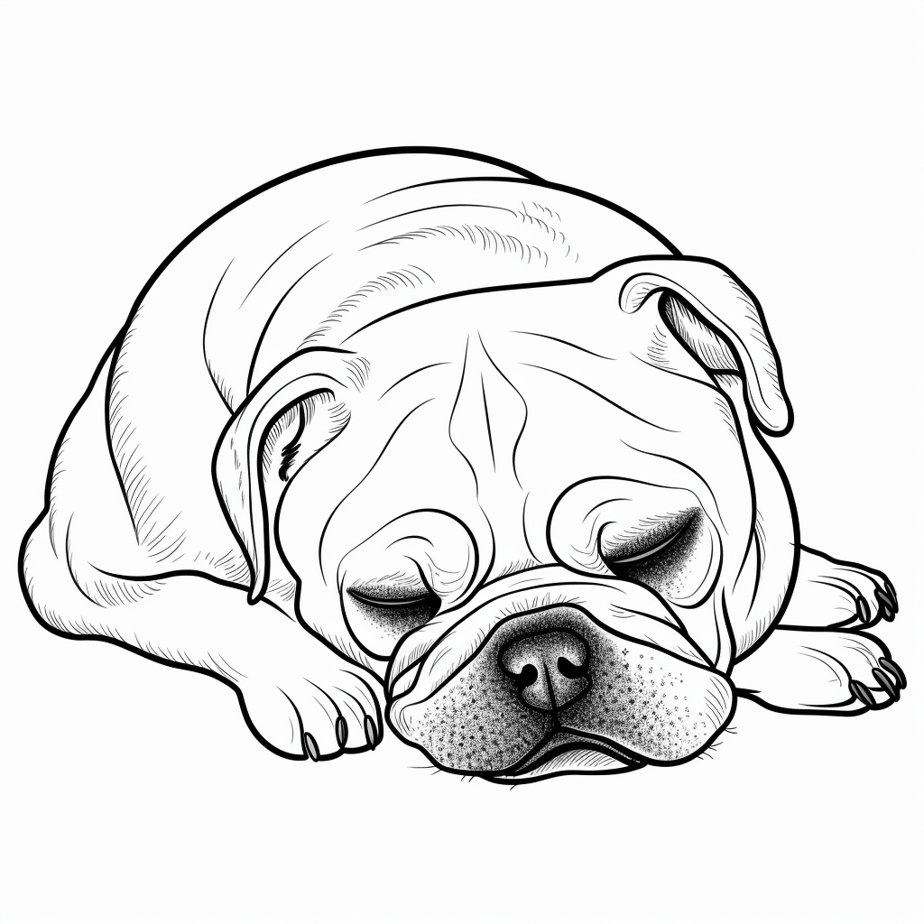 Dessin 5) Un carlin couché sur le sol, en train de dormir